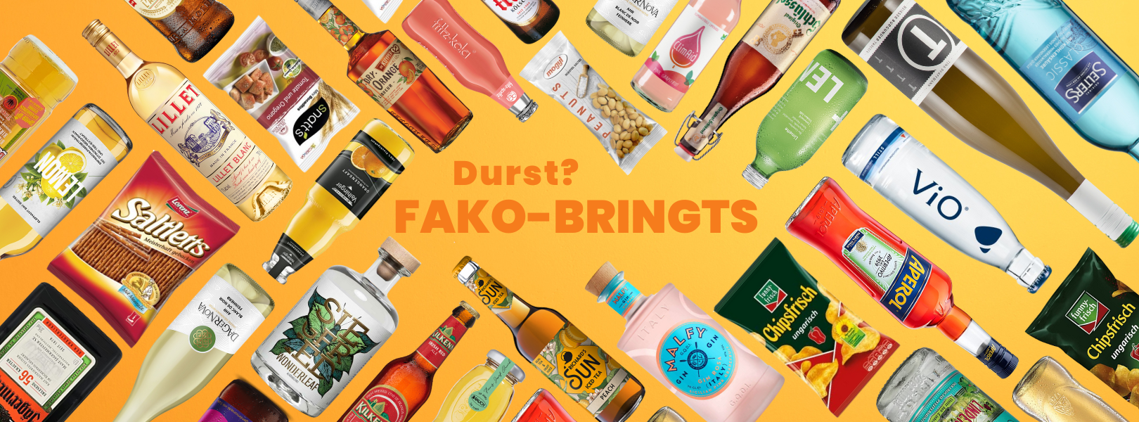 Bei FAKO-BRINGTS dreht sich alles rund um den Durst. Der Getränke Online-Shop www.fako-bringts.de ist der Lieferservice der Fako-M Getränke GmbH & Co. KG. Ein leistungsstarkes Team, innovatives Knowhow und ein überaus zuverlässiger Service machen es möglich: heute bestellt – morgen geliefert. Wählen Sie aus einer riesigen Auswahl unterschiedlichster Produkte Ihres Getränkelieferanten FAKO-BRINGTS und lassen Sie sich Ihre Getränke bequem, einfach, schnell und zuverlässig nach Hause liefern. Wann wir liefern, bestimmen Sie. Bei FAKO-BRINGTS gibt es keine Mindestbestellmengen.